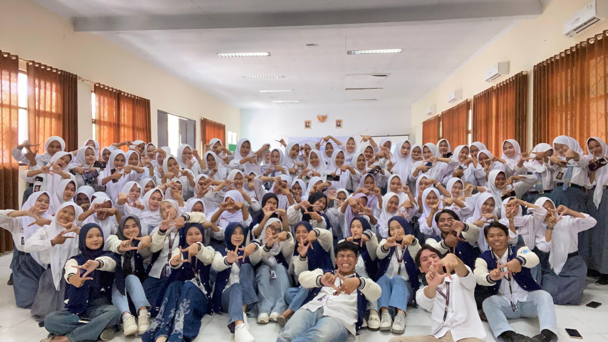 Antusiasme siswa terlihat saat sesi tanya jawab, di mana banyak peserta aktif bertanya seputar implementasi dan keamanan transaksi digital. Untuk memantapkan pemahaman, mahasiswa menyelenggarakan kuis interaktif melalui platform Kahoot dengan soal-soal terkait materi yang telah disampaikan. Sebagai apresiasi, siswa teraktif dan berprestasi dalam kuis diberikan doorprize menarik.